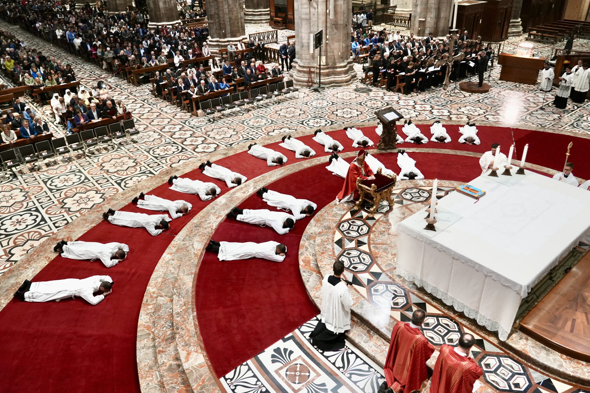 Sabato 5 ottobre, nel Duomo di Milano, 11 seminaristi diocesani hanno ricevuto l’Ordinazione diaconale, per l’imposizione delle mani e la preghiera consacratoria dell’arcivescovo mons. Mario Delpini. Insieme a loro anche Chadrack Chol, originario della diocesi di Rumbek in Sud Sudan, che ha compiuto il percorso di studi presso il Seminario di Venegono, per poi tornare in Africa ad esercitare il suo ministero. Inoltre, un seminarista del Bangladesh, un 55enne milanese candidato del Vicariato latino di Beirut e 6 appartenenti al Pontificio Istituto Missioni Estere.