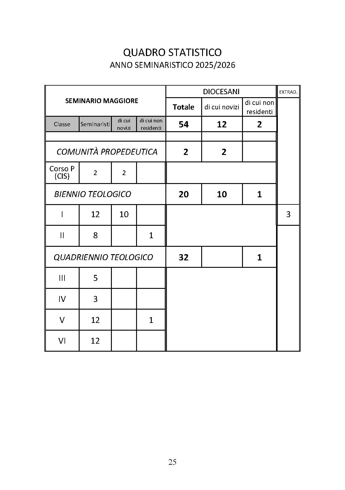 Statistiche seminaristi