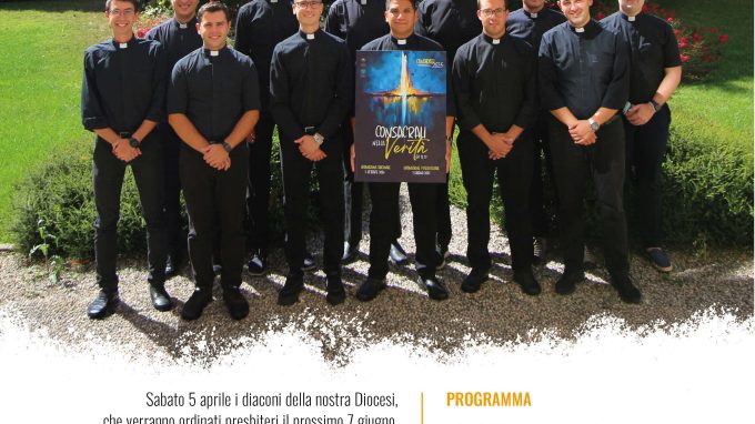 Sabato 5 aprile i diaconi della nostra Diocesi, che verranno ordinati presbiteri il prossimo 7 giugno, incontreranno gli amici e le amiche del Seminario, i sacristi e i familiari del clero.