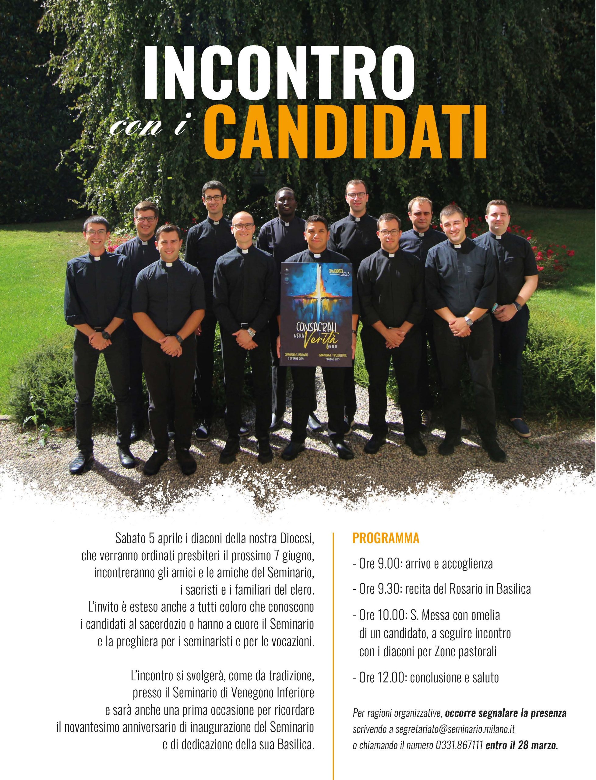 Per ragioni organizzative, occorre segnalare la presenza scrivendo a segretariato@seminario.milano.it o chiamando il numero 0331.867111 entro il 28 marzo.